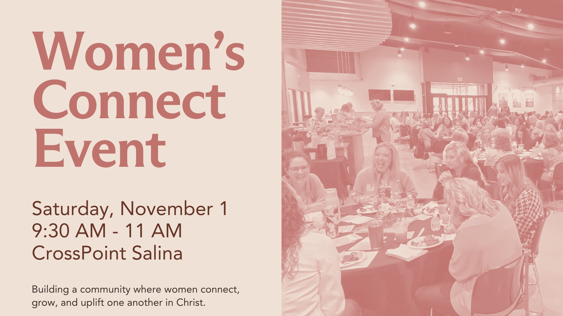 On Saturday, November 1st from 9:30 AM - 11:00 AM, join other women at CrossPoint Salina for this Women's Connect & Serve Event!